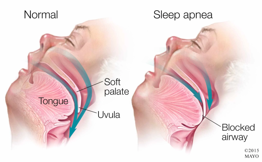 Obstructive sleep apnea happens when the airway narrows or collapses during sleep. When the airway becomes blocked, breathing can pause for short moments, sometimes dozens of times an hour. These repeated interruptions prevent deep, restorative sleep, even if a person spends 7 to 8 hours in bed.